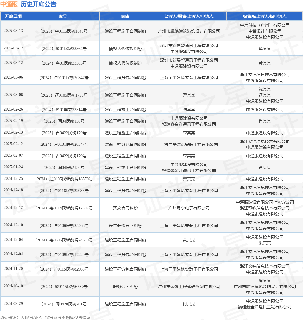 本站消息,根据天眼查APP显示,近日公布了一则中通服建设有限公司作为被告/被上诉人的开庭公告,详细内容如下: